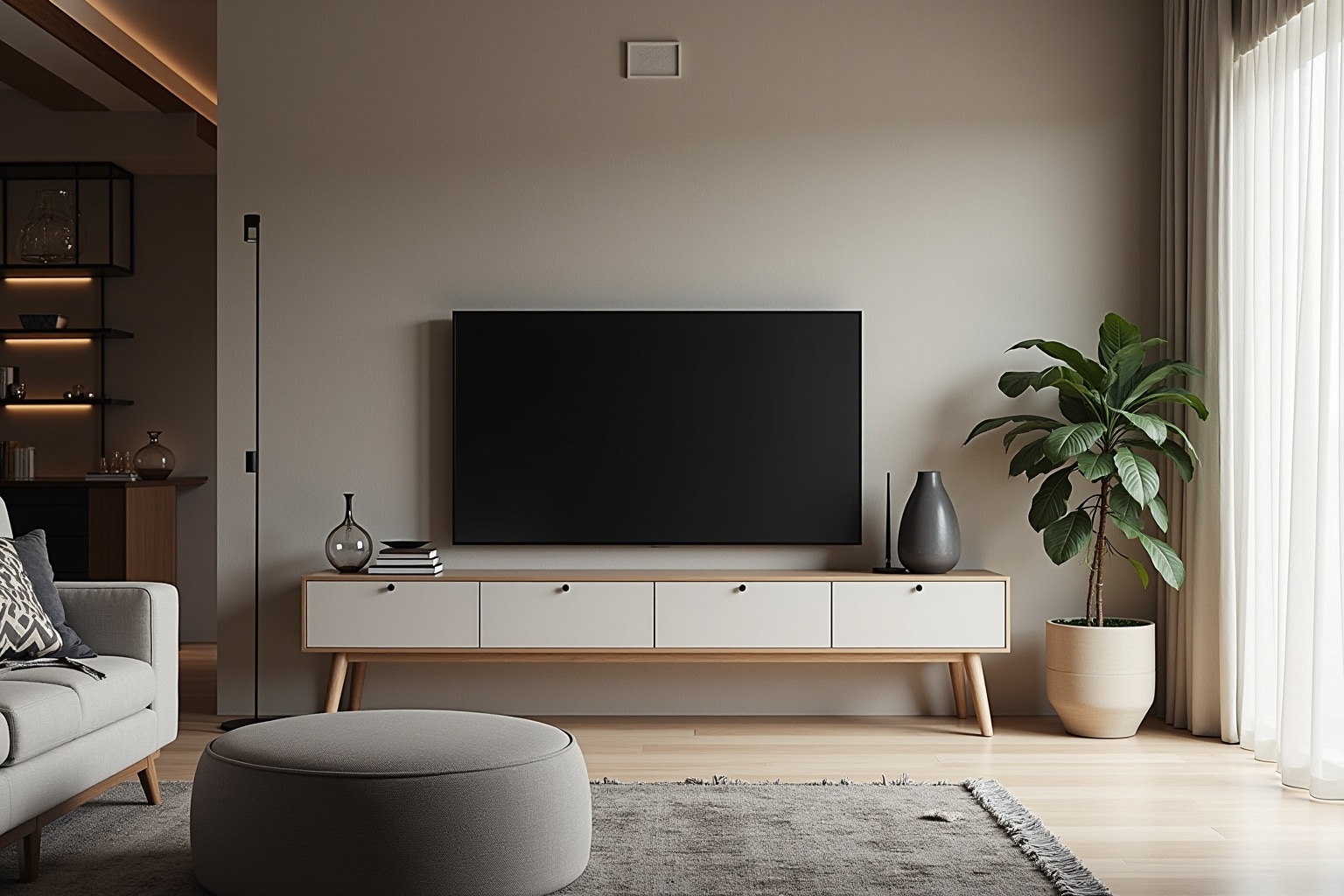 Zierkissen und Wohndecken sind die einfachste Möglichkeit, deinem Wohnzimmer regelmäßig einen neuen Look zu verpassen. Wechsle im Sommer zu leichten Leinenstoffen und im Winter zu grobem Strick oder flauschigem Kunstfell. Gardinen und Vorhänge bieten Sichtschutz und regulieren den Lichteinfall, während sie gleichzeitig die Fensterfronten dekorativ einrahmen.