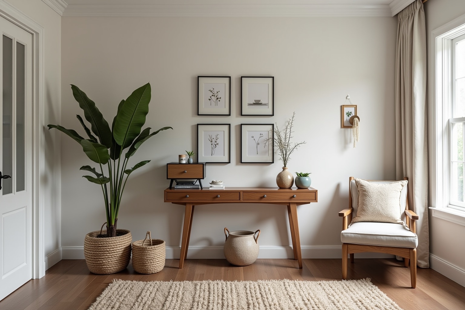 Setze auf robuste Materialien im Flur, da diese Zone einer hohen Beanspruchung ausgesetzt ist. Metall, beschichtetes Holz und strapazierfähige Textilien sind hier die beste Wahl.
